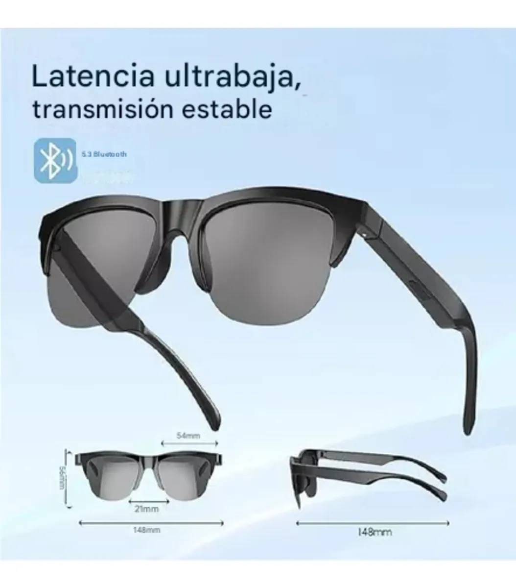 Lentes de Sol Inteligentes con Parlante Bluetooth 5.4 – Audio Estéreo Inalámbrico y Protección UV400 Disfruta de tu música y llamadas con estilo mientras proteges tus ojos del sol con los lentes de sol inteligentes con Bluetooth 5.4. Perfectos para el día a día, viajes, deportes y más, estos lentes combinan tecnología de audio de alta fidelidad con protección visual avanzada. Características destacadas: Conectividad avanzada: Bluetooth 5.4 con soporte para protocolos HFP, A2DP, AVRCP, HSP BR+EDR+BLE, ofreciendo una conexión estable y de baja latencia. Alcance inalámbrico de hasta 10 metros, ideal para moverte con libertad. Sonido estéreo de alta calidad: Sistema de audio con altavoces eléctricos 0916 de 8 ohmios, que brindan un sonido nítido y envolvente. Amplificador de clase D ANT8112 para una potencia de 1.2W. Respuesta de frecuencia de 20~20000Hz, reproduciendo cada detalle de tu música. Diseño ergonómico y funcional: Lentes polarizados HD con protección UV400, bloqueando eficazmente los rayos ultravioleta y reduciendo el deslumbramiento. Ligereza y comodidad para un uso prolongado sin molestias. Controles táctiles intuitivos para gestionar música y llamadas sin esfuerzo. Batería de larga duración: Batería de polímero de iones de litio de 3.7V y 80mAh, proporcionando horas de uso continuo con una sola carga. Carga rápida a través de puerto USB para mayor practicidad. Compatibilidad universal: Compatible con dispositivos iOS y Android para una conexión sin complicaciones. Especificaciones técnicas: Sistema de canales: Estéreo inalámbrico. Modo de control: Táctil. Solución inalámbrica: Jerry AC7003F4. Frecuencia de operación: 2.4GHz-2.4835GHz Banda ISM. Nivel de potencia RF: 3. Micrófono: Condensador electret para llamadas claras. Dimensiones: Ajuste universal con diseño versátil. Incluye: 1 Lentes de sol inteligentes Bluetooth. 1 Cable de carga. 1 Paño de limpieza. Manual de usuario.